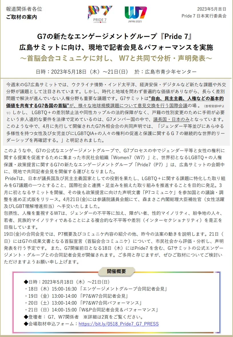 2023年5月12日発売の「週刊金曜日」1423号(特集:G7サミット直前 ヒロシマを心に刻む)において、市民社会の活動が多数掲載されています。https://www.kinyobi.co.jp/tokushu/003650.php