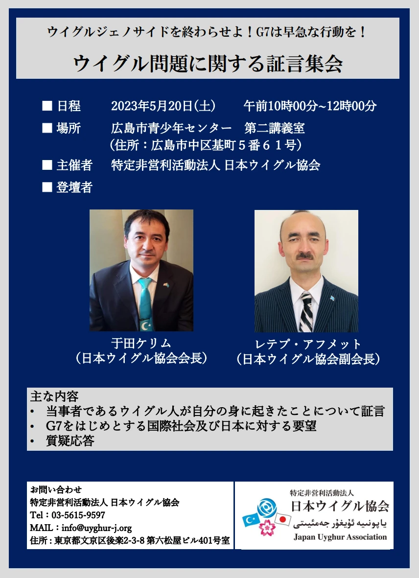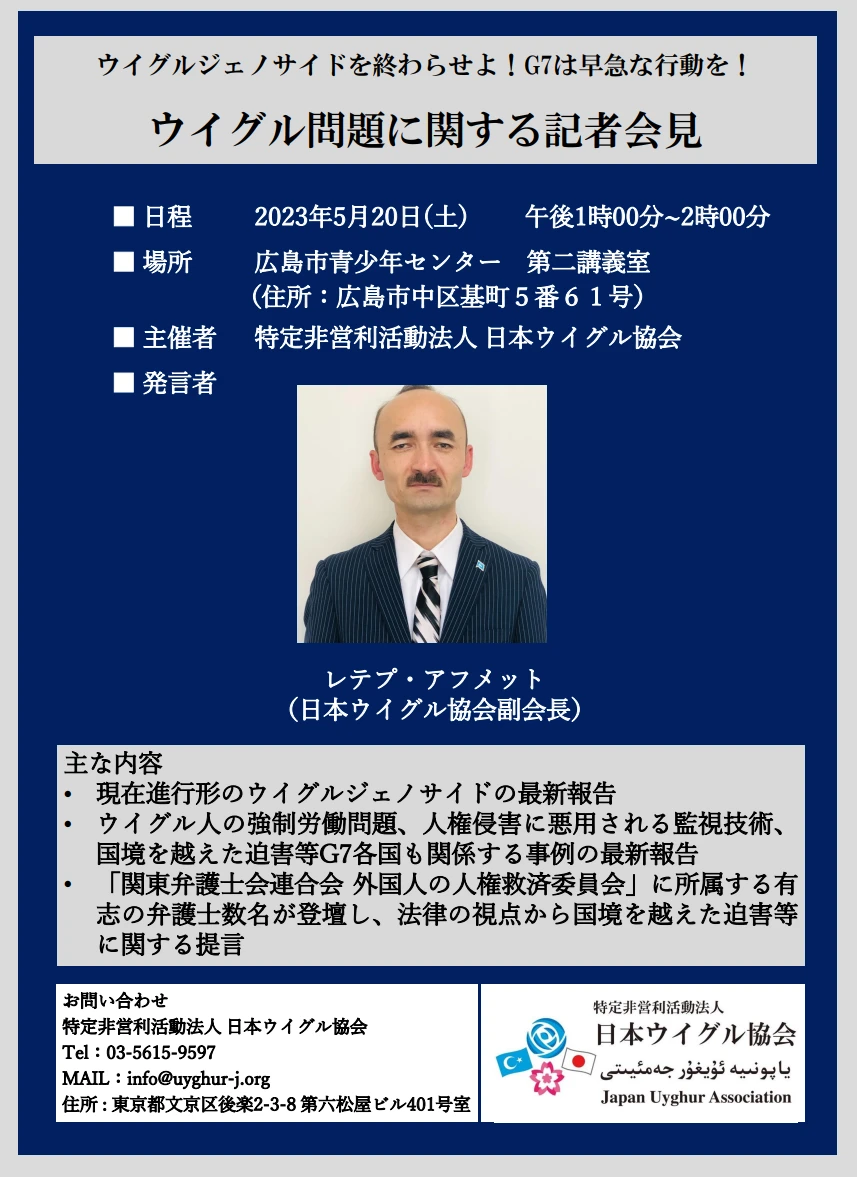 NGOスペース企画・記者会見「G7広島サミット首脳に対し、中国の圧政下にある諸民族による訴えと中国への対処の要望」(5/20土11:00-12:00)